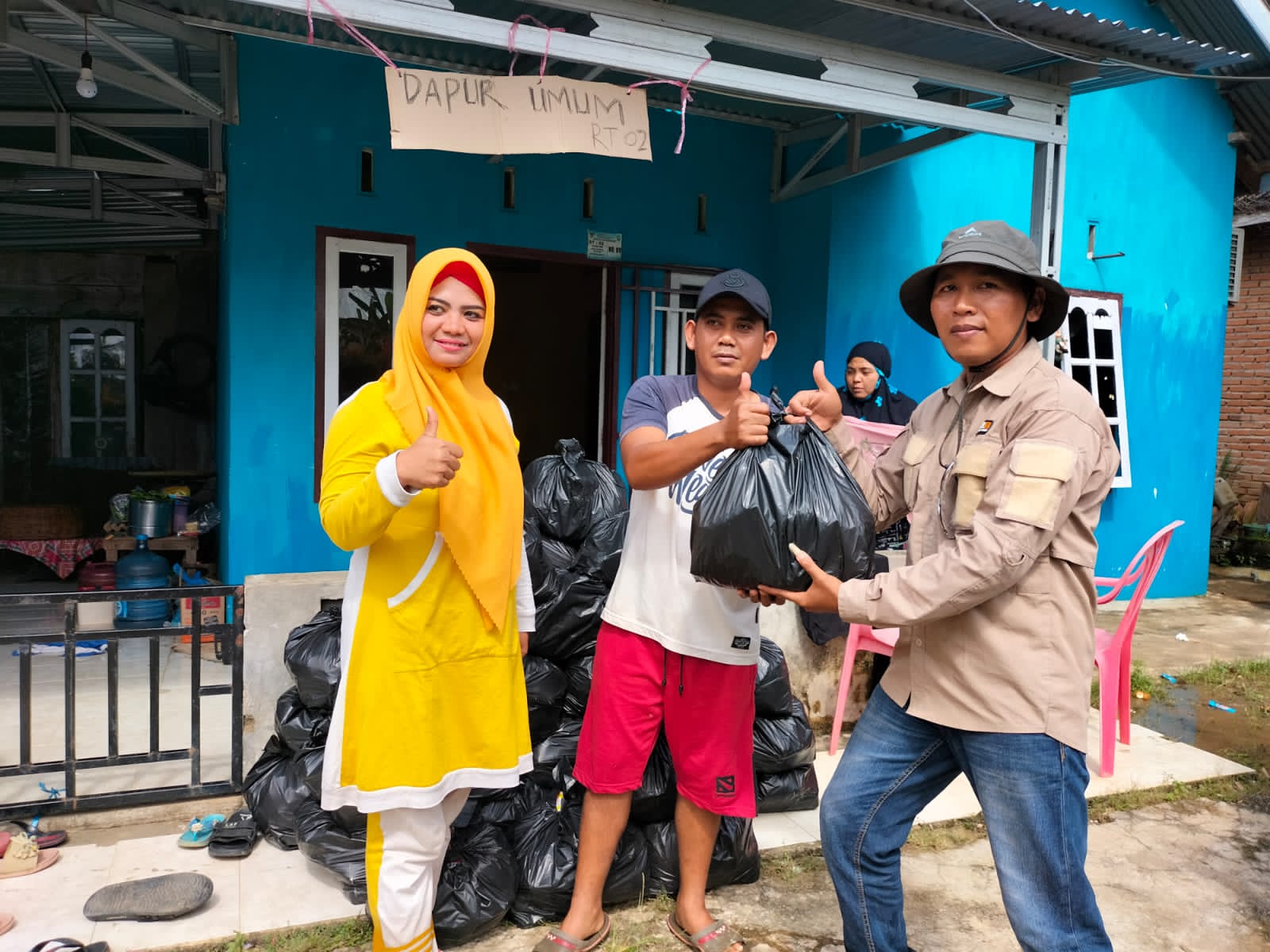 Saat penyerahan di paket sembako di Lubuk Tenam didampingi ketua RT
