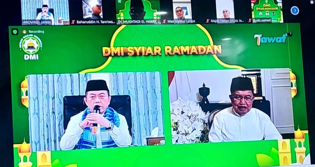 Acara yang dilaksanakan secara virtual bersama PP DMI dihadiri juga oleh Ketua Umum PP DMI H. M Jusuf Kalla, Ketua Pimpinan Wilayah DMI Provinsi Jambi beserta Jajaran .Syiar Ramadhan ini dilaksanakan dari Ruang Zoom Rumah Dinas Gubernur Jambi.