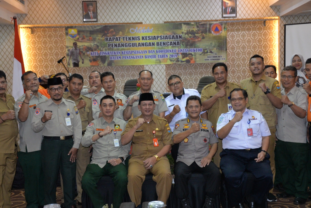 Rapat Teknis Kesiapsiagaan Penanggulangan Bencana Banjir diikuti 60 orang dari BPBD Kabupaten Muaro Jambi, Batanghari, Tanjung Jabung Barat, Tanjung Jabung Timur, dan juga melibatkan pihak Polda Jambi dan Badan Sar Nasional. (Zal)