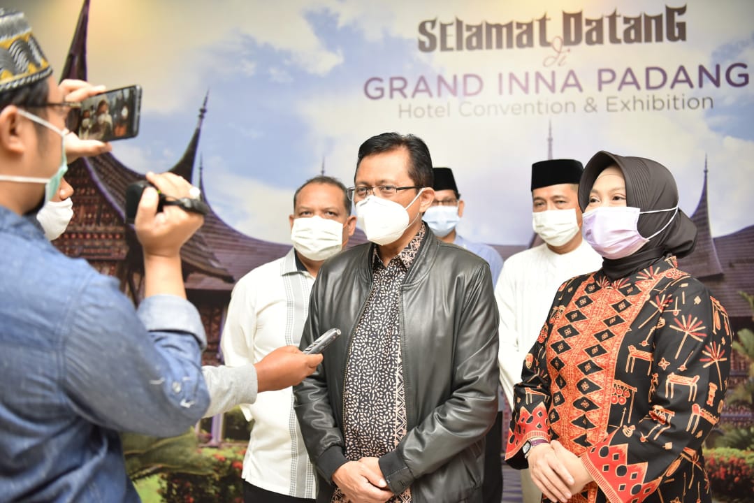 SUARA PADANG – Penjabat Sementara (Pjs) Gubernur Jambi Ir.Restuardy (Ardy) Daud bersama istri Suci Ramadhona Restuardy, menghadiri Pembukaan Musabaqah Tilawatil Qur’an (MTQ) Tingkat Nasional XXVIII (ke-28) Tahun 2020, yang dibuka secara virtual oleh Presiden Republik Indonesia Ir.Joko Widodo (Jokowi) dari Istana Negara, sedangkan para gubernur dan undangan lainnya hadir di Stadiun Utama Sikabau Padang Pariaman, Provinsi Sumatera Barat, Sabtu (14/11/2020) malam.