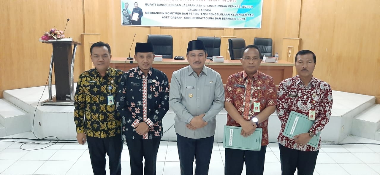SUARA BUNGO – Pemerintah Kabupaten Bungo melalui Badn Pengelola Keuangan dan Aset Daerah (BPKAD) melaksanakan kegiatan Silaturrahmi dan Tatap Muka Bupati Bungo Dengan Jajaran ASN di Lingkungan Pemkab Bungo Dalam Rangka Membangun Komitmen dan Persistensi Pengelolaan Keuangan dan Aset Daerah Yang Berdayaguna dan Berhasil Guna, yang bertempat di ruang pola kantor Bupati, Jum’at (21/6/2019).