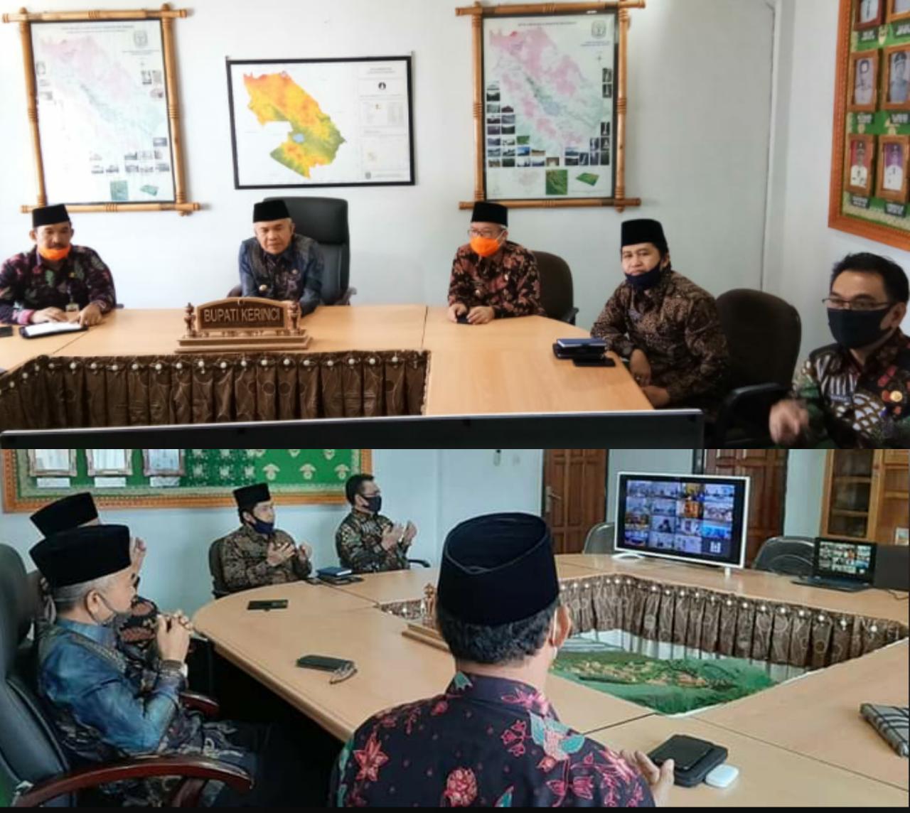 Turut mendampingi Bupati pada kegiatan Halal bi halal via video conference ini, Wakil Bupati Ami Taher, Pejabat Sekretaris Daerah Asraf, Asisten Pemerintahan dan Kesra Zufran serta Kepala Kemenag Kabupaten Kerinci Hardiman. (ndy)