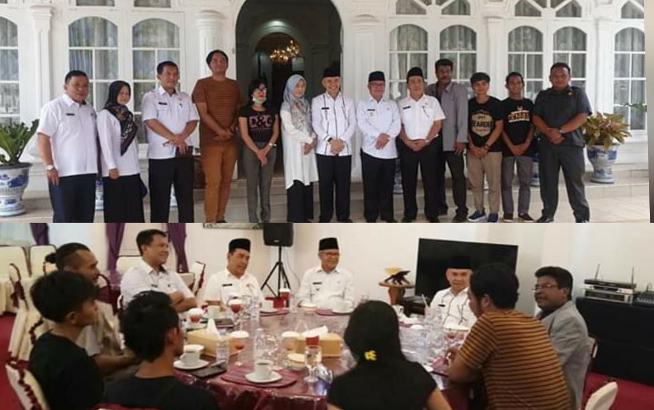 SUARA KERINCI – Bertempat di rumah dinas bupati, Kumun, Kota Sungai Penuh. Bupati Kerinci H. Adirozal didampingi Ketua TP PKK Hj. Nailil Husna menerima kunjungan atau silaturahmi dari Tim Komedi Cerita Geli Batanghari (Komedi Tali BH) Jambi, yang berpusat di Kabupaten Batanghari, Rabu (04/03/2020).