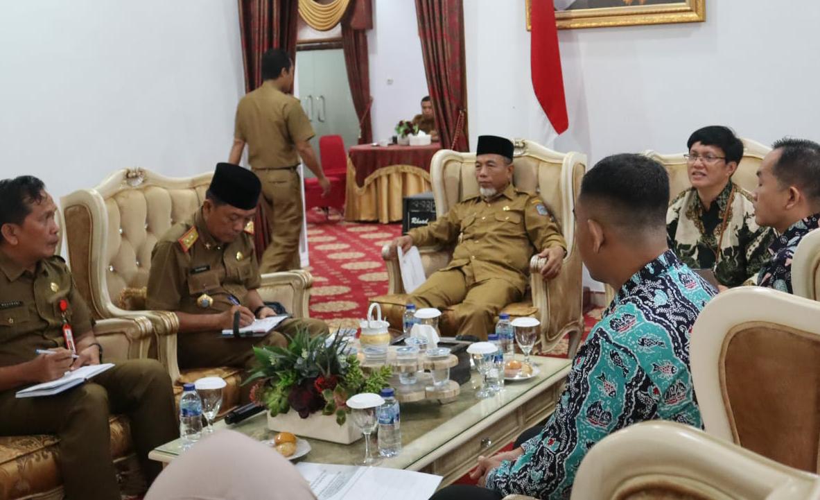 SUARA BANGKO – Bupati Merangin H Mashuri dan Sekda Fajarman mendampingi tim Badan Pemeriksa Keuangan (BPK) perwakilan Provinsi Jambi melakukan entry meeting, di rumah dinas bupati Merangin, Selasa (31/1/2023).