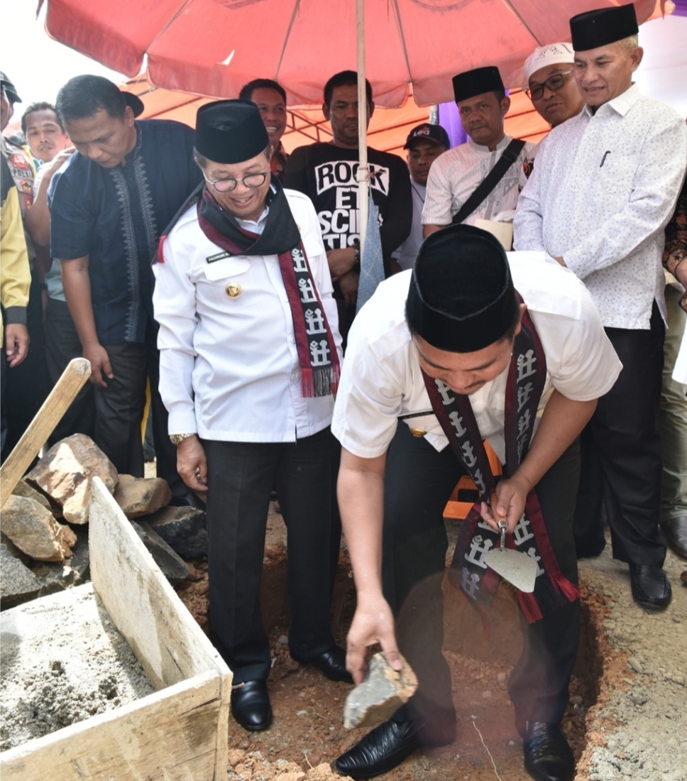 SUARA BUNGO – Bupati Bungo H. Mashuri dampingi Gubernur Jambi, Dr. Drs. H. Fachrori Umar, M. Hum melakukan Peletakan Batu Pertama Pembangunan Masjid Raya Baiturrahim, Dusun Rantau Keloyang, Kecamatan Pelepat, Kabupaten Bungo, Rabu (06/03/2019) sore.