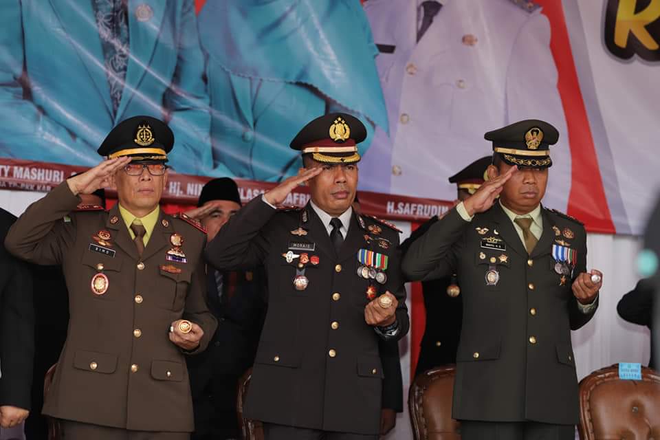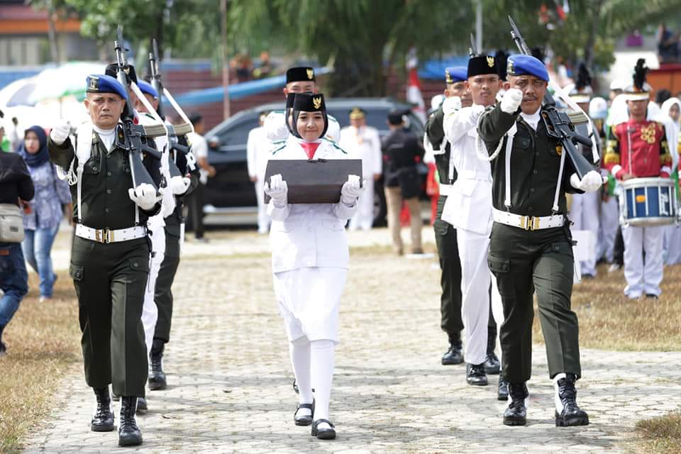 SUARA BUNGO – Upacara pengibaran bendera merah putih memperingati Hari Ulang Tahun Republik Indonesia (HUT RI) yang ke-74 tahun 2019 berlangsung sukses, yang bertempat dilapangan Serunai Baru, Kabupaten Bungo, Sabtu (17/08/2019).