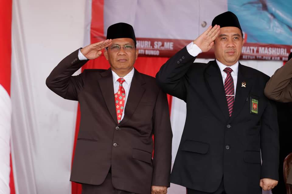 Bupati Bungo, H. Mashuri saat pidato mengucapkan Dirgahayu Republik Indonesia (RI) ke-74. Dirinya juga mengatakan, tantangan kedepan dalam kehidupan berbangsa dan bernegara adalah salah satunya yaitu meningkatkan Sumber Daya Manusia (SDM).