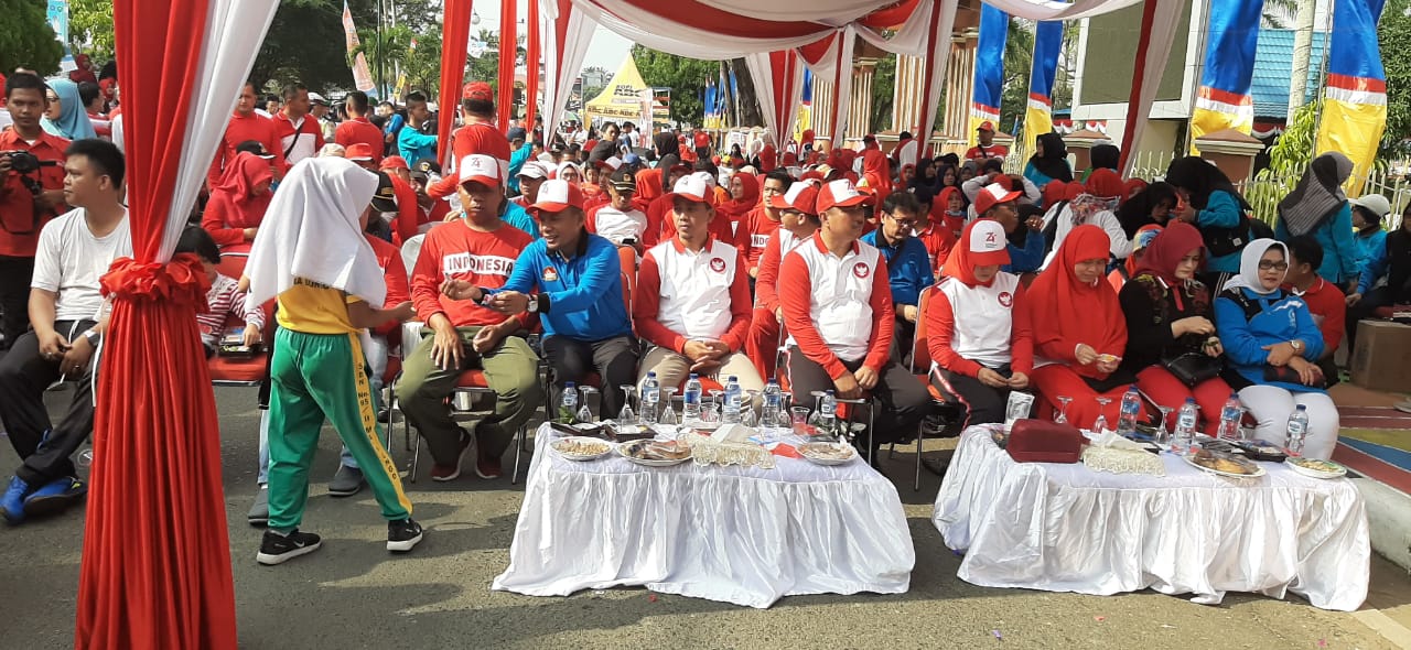 SUARA BUNGO – Bupati Bungo, H. Mashuri didampingi Wakil Bupati Safrudin Dwi Apriyanto resmi melepas ribuan peserta Kirab Bendera merah putih sepanjang 1000 meter dalam rangka menyambut hari kemerdekaan rakyat indonesia (HUT RI) ke-74 tahun 2019, Minggu (4/8/2019) yang dimulai dari depan rumah Dinas Bupati Bungo.