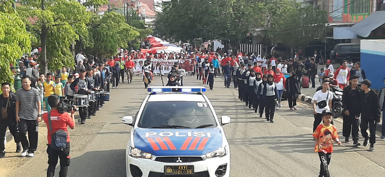 Bupati Mashuri Resmi Lepas Ribuan Peserta Kirab Bendera Merah Putih Sepanjang 1000 Meter