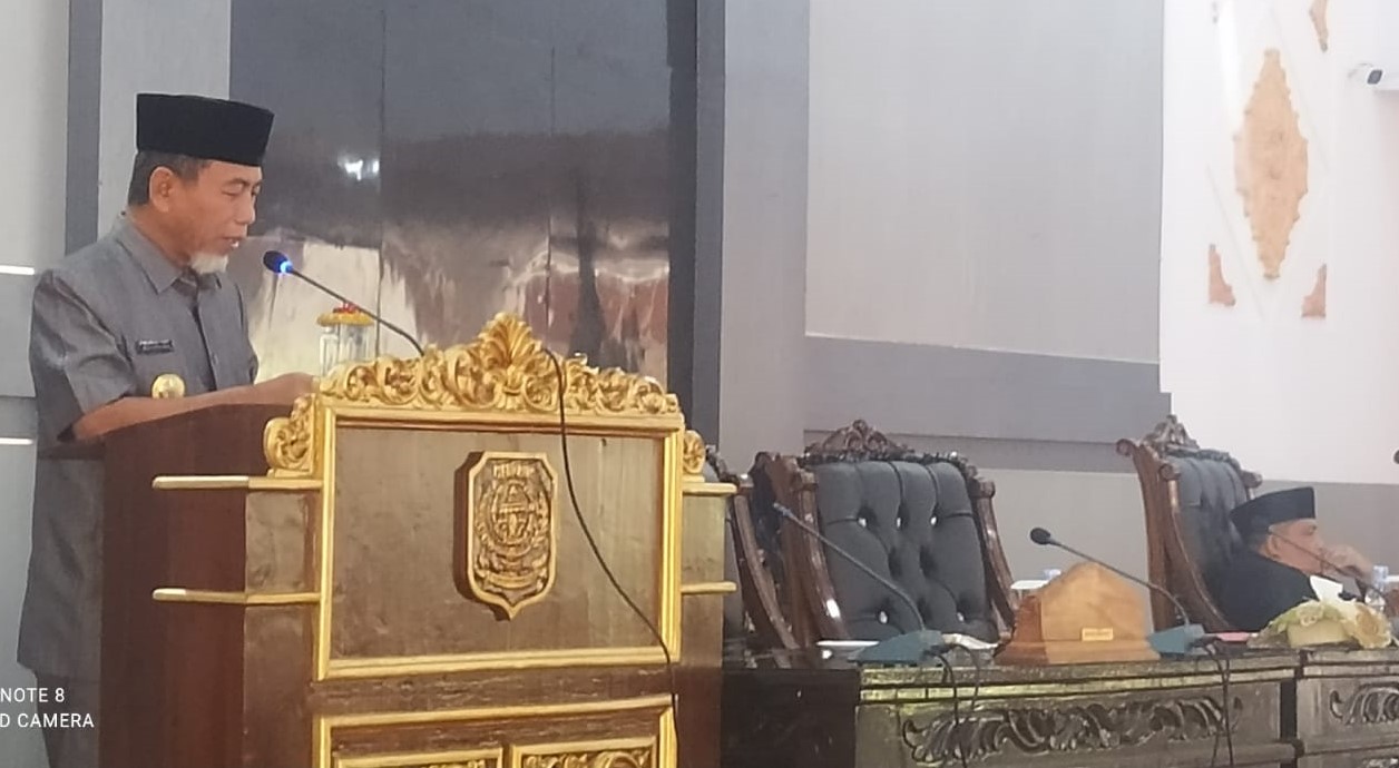 SUARA BANGKO – Bupati Merangin, H Mashuri menyampaikan jawaban pemerintah, terhadap enam ranperda inisiatif Dewan dan lima Ranperda Kabupaten Merangin 2021, pada rapat paripurna DPRD Merangin, Kamis (16/9/2021).
