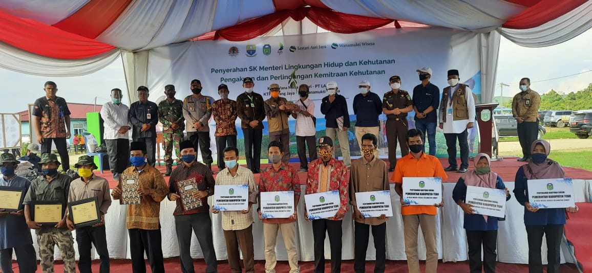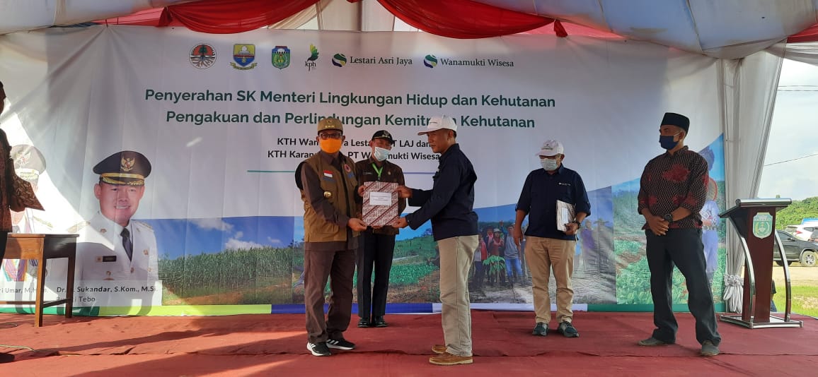 Hal tersebut di sampaikannya saat memberikan arahan pada acaa penyerahan SK Pengakuan dan Perlindungan Kemitraan Kehutanan (KTH) Wana Mitra Lestari dengan PT. Lestari Asri Jaya dan KTH Karang Jaya dengan PT. Wanamukti Wisesa yang diserahkan oleh Gubernur Jambi, Dr. Drs. H. Fachrori Umar dilokasi PT. LAJ, di Desa Muara Sekalo, Kecamatan Sumay, Jumat (24/07/2020).