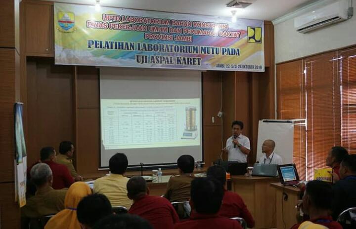 SUARA JAMBI – Dinas Pekerjaan Umum dan Perumahan Rakyat (PUPR) Provinsi Jambi melaksanakan pelatihan Laborotorium mutu pada uji aspal karet dalam rangka meningkatkan SDM handal dan berkualitas yang dimiliki oleh teknisi laborotorium internal UPTD bahan kontruksi bidang BM, Balai Jalan Wilayah IV, Dinas PUPR Kabupaten/Kota.