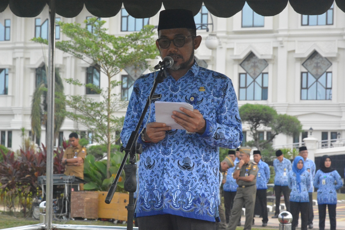 SUARA JAMBI – Gubernur Jambi, Fachrori Umar minta Aparatur Sipil Negara (ASN) membangun budaya kerja berkualitas, yang akan berdampak pada peningkatan kinerja pemerintahan. Hal tersebut disampaikan Gubernur Jambi dalam sambutan tertulisnya yang dibacakan oleh Asisten Sekda Bidang Administrasi Umum (A3) dalam Upacara Peningkatan Nasionalisme dan Kedisiplinan Aparatur Sipil Negara (ASN) Lingkup Pemerintah Provinsi Jambi, Senin (18/3/2019) di lapangan depan Kantor Gubernur Jambi.