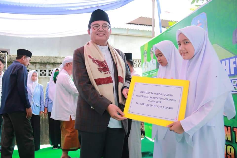 Bupati Merangin, Dr.H.Al-Haris mengatakan, Pemkab Merangin membuat program membantu santri berprestasi yaitu Program Hafis Qur’an, satu orang anak Rp1 juta, untuk tahun 2019 untuk 50 orang anak, nanti akan diberikan kepada pimpinan ponpes dengan tujuan agar pimpinan akan memberikan siapa yang berhak menerimanya, tahun selanjutnya ditingkatkan untuk 100 anak dengan sasaran sampai 500 anak mendapat beasiswa tersebut setiap tahunnya.