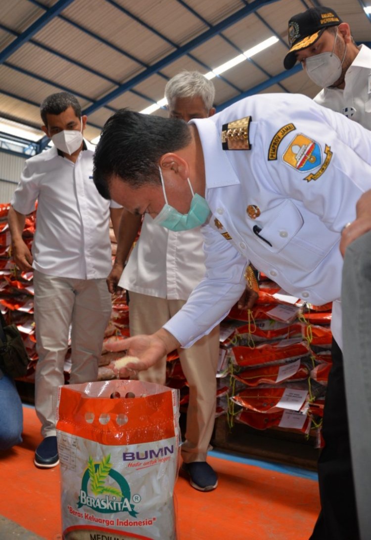 SUARA JAMBI – Gubernur Jambi, Al Haris meninjau langsung gudang Bulog Jambi untuk memastikan penyaluran bantuan beras akibat dari Pemberlakuan Pembatasan Kegiatan Masyarakat (PPKM) 2021 untuk Provinsi Jambi siap di distribusikan kepada masyarakat Keluarga Penerima Manfaat (KPM) tepat waktu dan tepat sasaran.