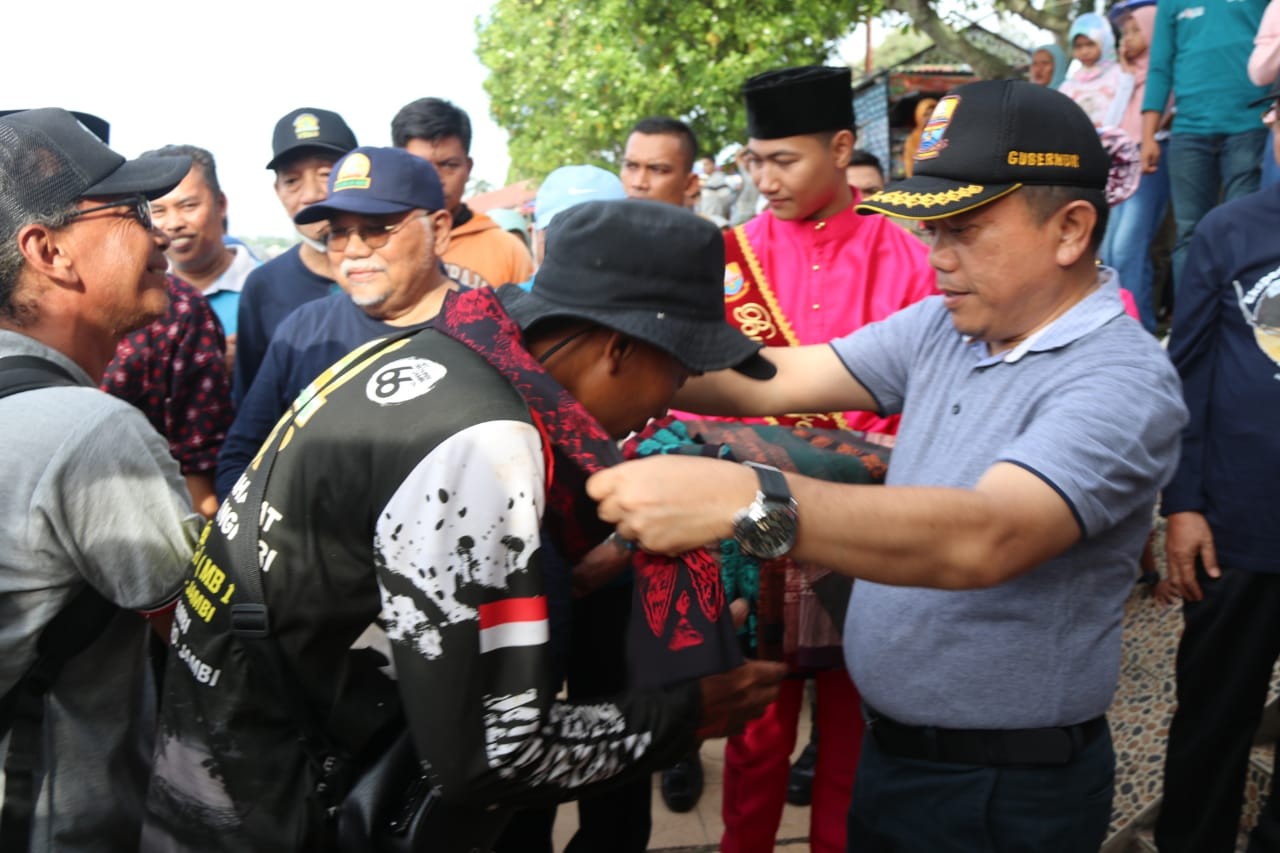 SUARA JAMBI – Gubernur Jambi, Dr. H. Al Haris, S.Sos., MH., didampingi Wakil Gubernur Jambi Drs. H. Abdullah Sani., M.Pd.I., menyambut secara langsung kedatangan Tim Ekspedisi Milir Berakit dari Kabupaten Sarolangun di Kawasan Tanggo Rajo Jambi, Sabtu (07/01/2023).