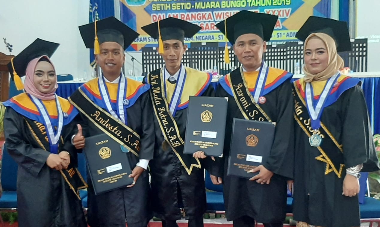 Dalam agenda sidang senat terbuka wisuda sarjana dan diploma yang digelar di lantai 3 gedung C Pasca Sarjana STIA tersebut, para lulusan terbaik dari masing-masing program studi (Prodi) diberikan penghargaan oleh pihak kampus dan yayasan Setih Setio Muara Bungo.