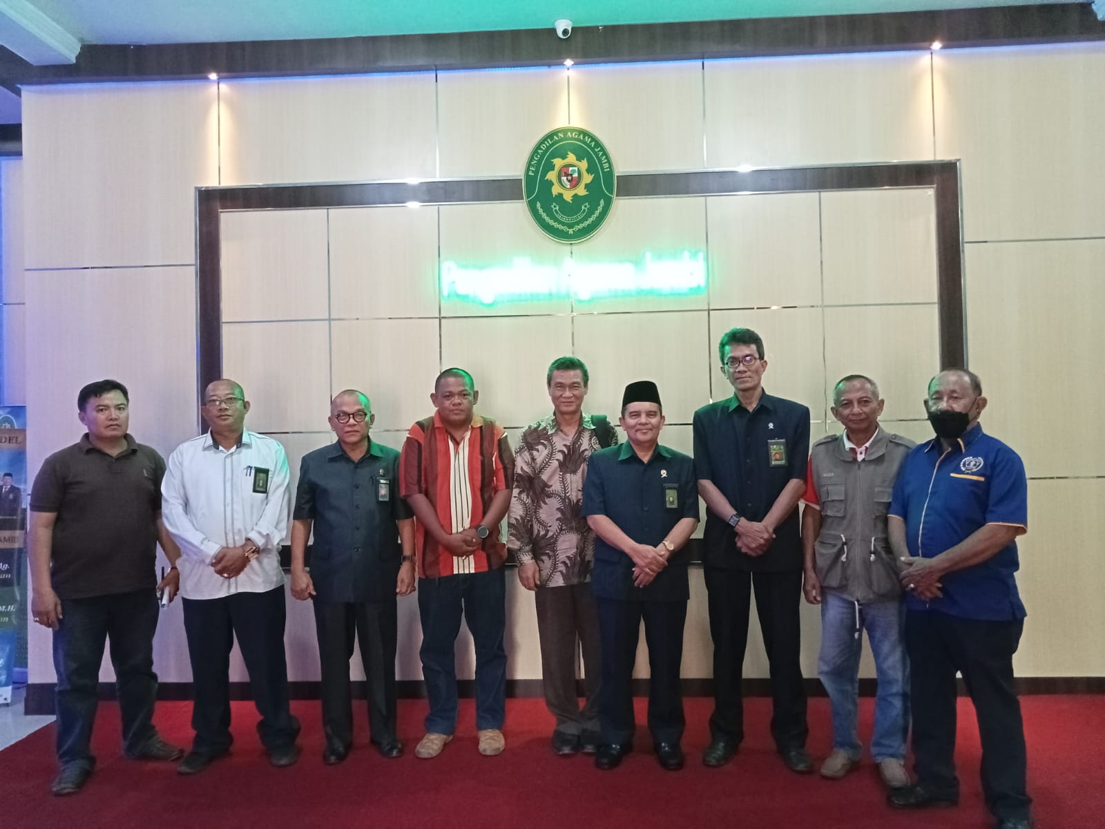 SUARA JAMBI – Ketua Pengadilan Agama Jambi, Drs. Muhamad Nuh, SH., MH didampingi Wakil Ketua Pengadilan Agama, Isrizal Anwar, S.Ag., M. Hum, Sekretaris Pengadilan Agama, Sapi’i, S.Ag., MH dan Humas Pengadilan Agama Jambi, Drs.H. Dasril, SH., MH menerima kunjungan silaturahmi dari PWI (Persatuan Wartawan Indonesia) Provinsi Jambi masa bakti 2022-2027 diruang kerja Ketua Pengadilan Agama Jambi, Senin (31/10/2022) sekitar pukul 14.30 Wib.