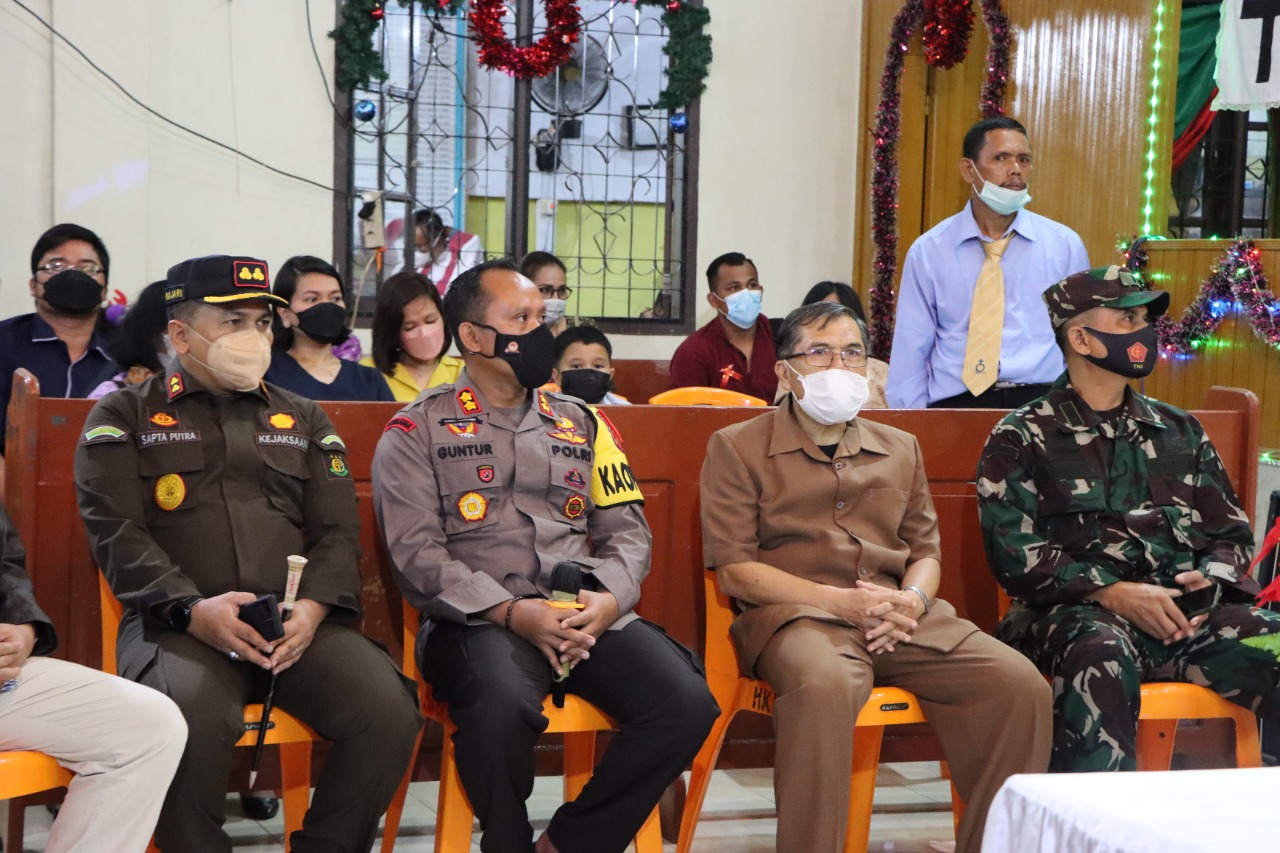 Hal itu disampaikan Guntur saat meninjau langsung perayaan saat malam Misa Natal di Gereja Santo Paulus dan Gereja HKBP Muara Bungo bersama dengan Forkompimda Kabupaten Bungo, Jumat (24/12/2021).