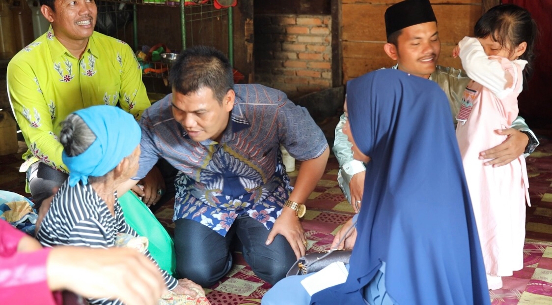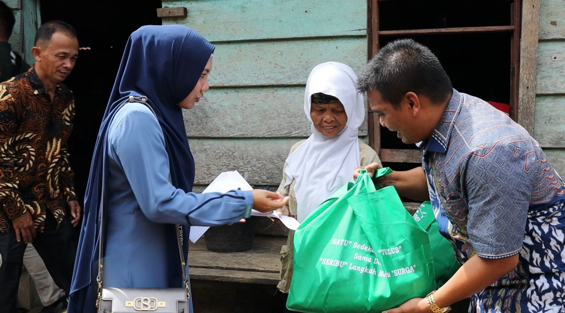 “Hari ini kita sengaja menuju dusun paling ujung, yaitu Dusun Pemunyian, Kecamatan Limbur Lubuk Mengkuang untuk menyerahkan bantuan paket sembako kepada orang tua jompo yang ada disitu,” ujar Maidani, SE.