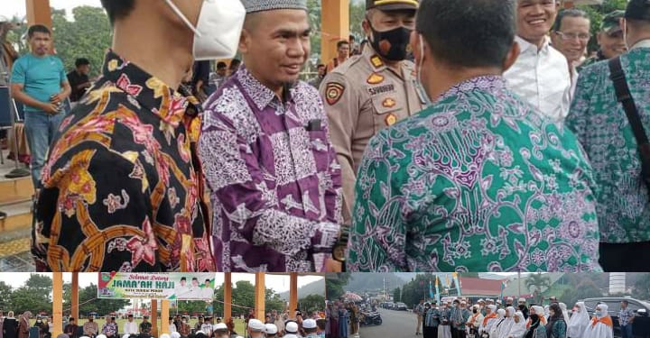 Bersama Wakil Walikota Alvia Santoni, Para Forkopimda dan jajaran Pemkot Sungai Penuh. Penyambutan Sebanyak 47 jemaah dilaksanakan di Lapangan Merdeka, Minggu (07/08/2022).