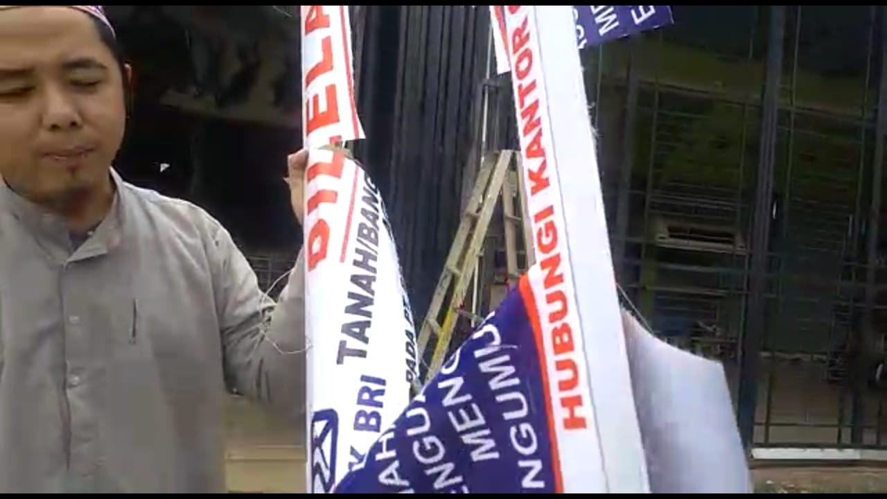 SUARA JAMBI – Perbuatan PT. Bank Rakyat Indonesia (BRI) Cabang Muara Bulian yang memasang papan pelelangan di salah satu bengkel, Rabu (6/3/2019) dinilai dzolim terhadap konsumen atau nasabah. Apalagi pemasangan plang membawa aparat kepolisian bersenjata lengkap.