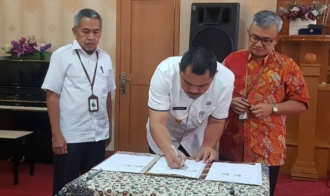 Dalam kesempatan tersebut juga, dilanjutkan dengan penandatanganan PKS antara Kepala BPKAD Kabupaten Bungo Drs. Supriyadi, Pejabat BPKP Perwakilan Provinsi Jambi Sarwinah dan PT. Bank Pembangunan Jambi Cabang Muara Bungo. (Oni)