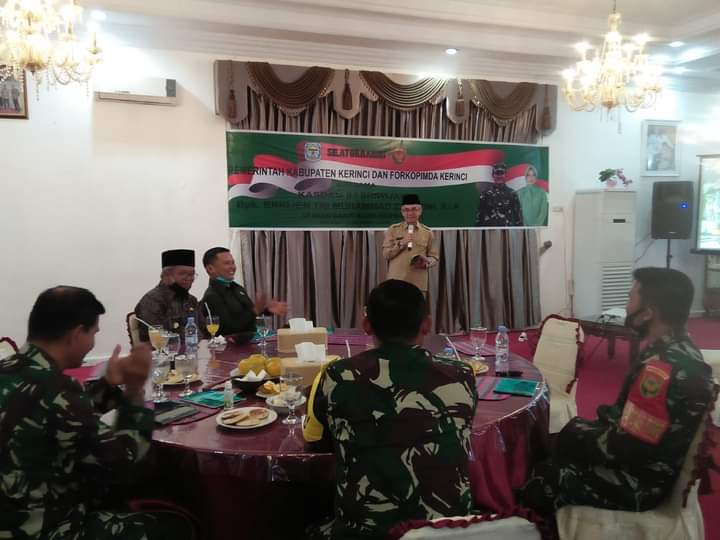 SUARA KERINCI – Pemerintah Kabupaten (Pemkab) Kerinci dengan Forkopimda Kerinci laksanakan Silaturrahmi dengan Kasdam II Sriwijaya Brigjen TNI Muhammad Zamroni S.I.P. Berserta istri di Bumi Sakit Alam Kerinci, Selasa (13/10/2020).