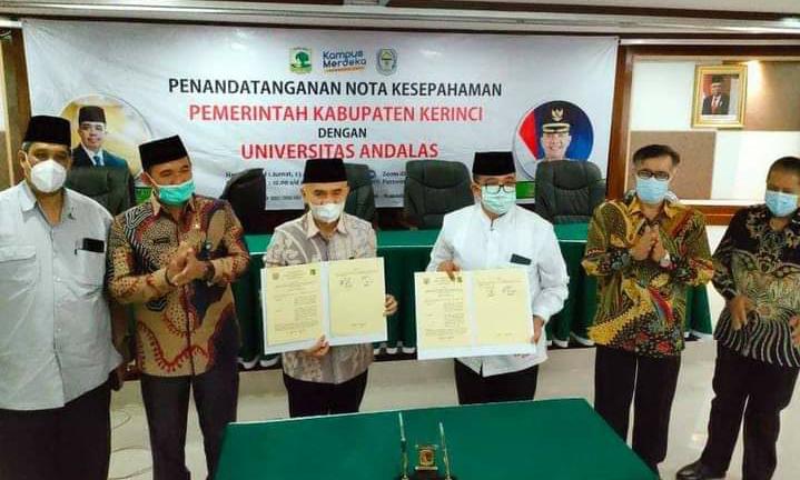 Penandatanganan dilakukan langsung oleh Rektor UNAND Prof Dr Yuliandri SH MH dengan Bupati Kerinci Dr H Adirozal MSi.