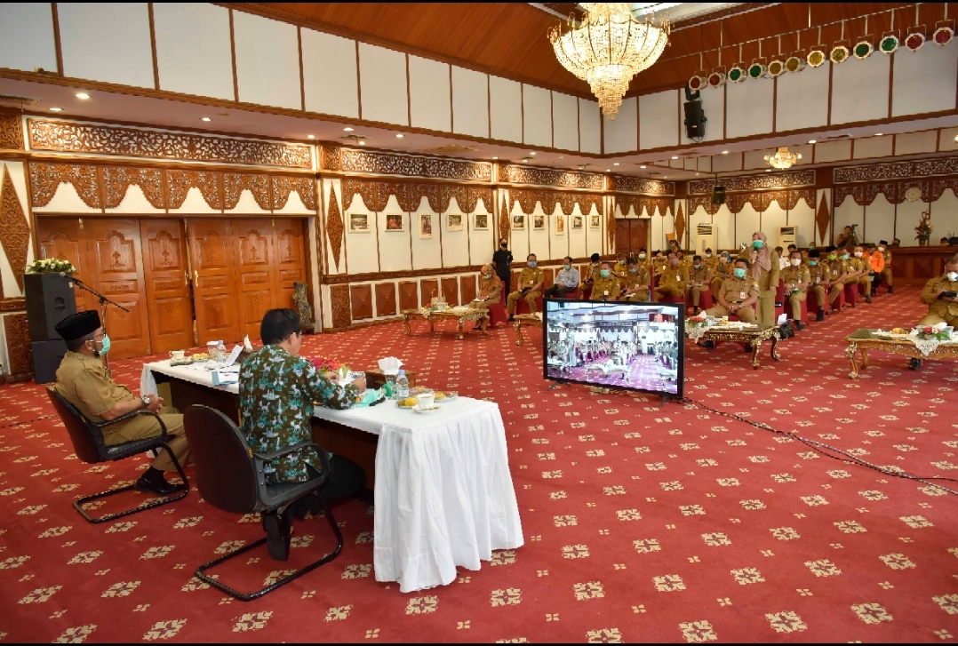 Penjabat Sekretaris Daerah (Pj.Sekda) Provinsi Jambi, H. Sudirman,SH.,MH bertindak sebagai moderator dalam rapat yang diikuti oleh Staf Ahli Gubernur, Asisten Sekda Provinsi Jambi, seluruh Kepala Organisasi Perangkat Daerah (OPD) Pemerintah Provinsi Jambi dan seluruh eselon III dan IV OPD Pemerintah Provinsi Jambi melalui aplikasi zoom meeting.