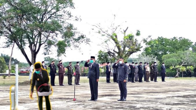 SUARA BUNGO – Pjs Bupati Bungo, Akhmad Bestari pimpin upacara peringatan hari Pahlawan di Taman Makam Pahlawan (TMP) Satria Negara, SKB, Kecamatan Bathin III, Selasa (10/11/2020).