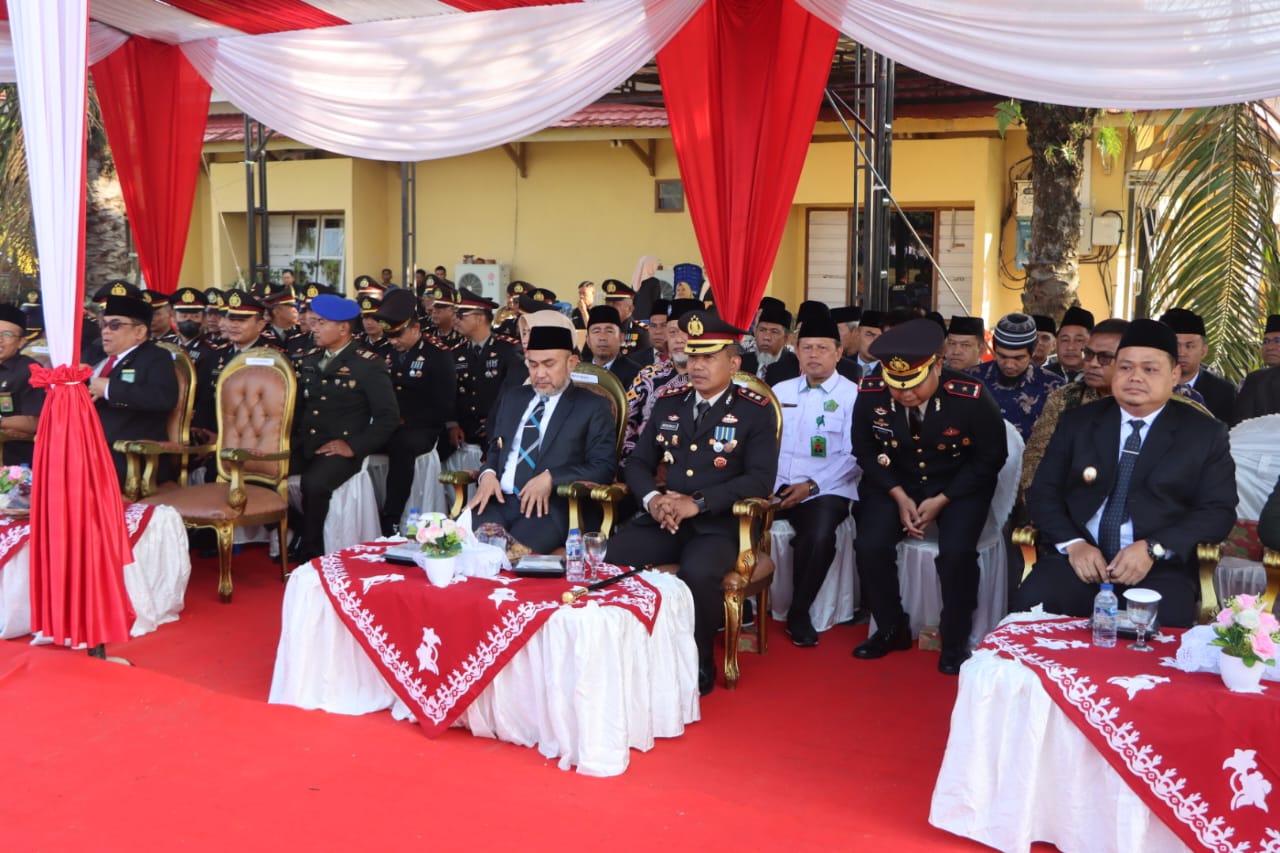 Upacara hari Bhayangkara ke-79 yang mengusung tema, “Polri Untuk Masyarakat”, dipimpin langsung oleh Kapolres Bungo, AKBP. Natalena Eko Cahyono, S. Kom., M. Si, yang juga bertindak sebagai Inspektur Upacara.