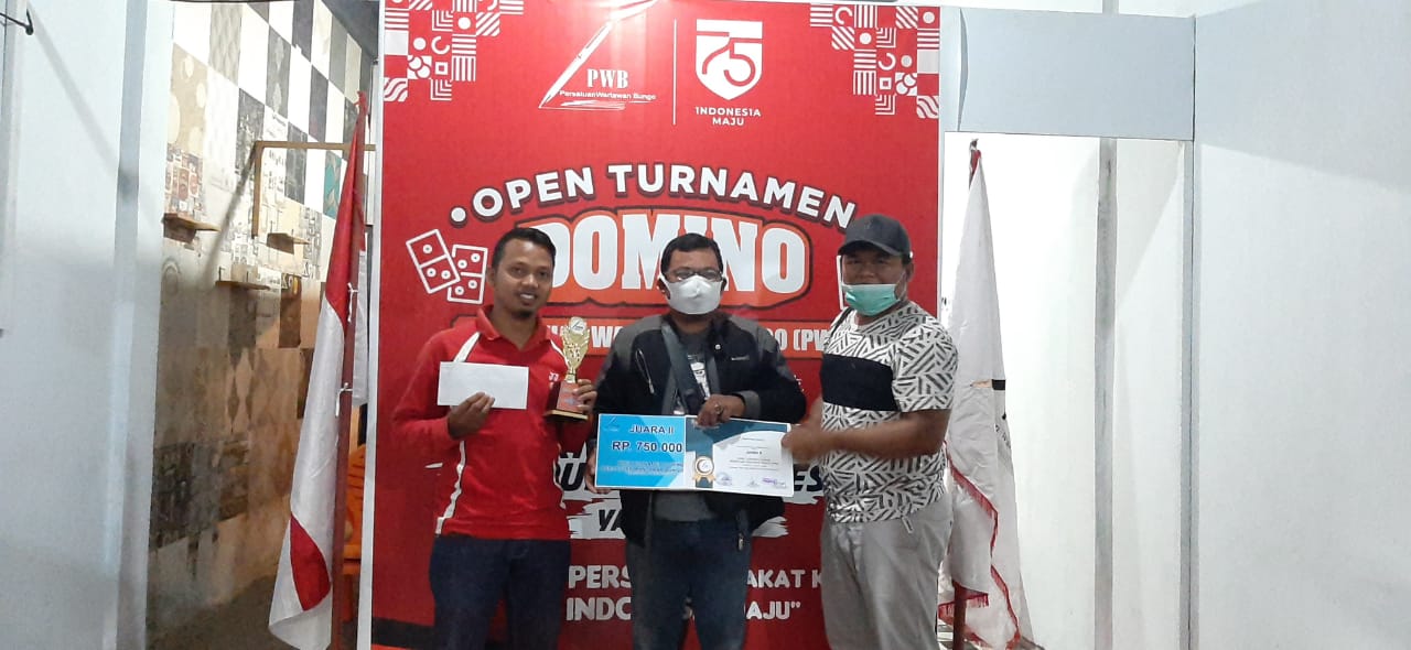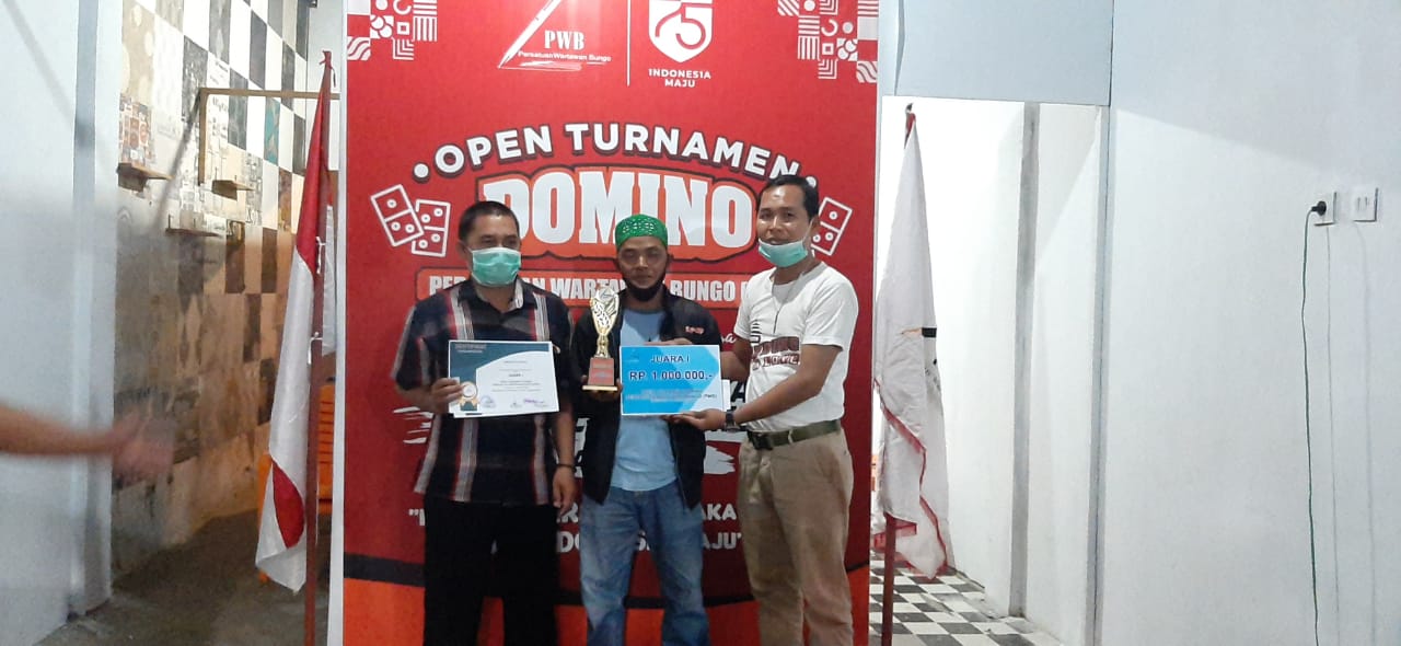 SUARA BUNGO — Persatuan Wartawan Bungo (PWB) sukses menggelar “Open Turnamen Domino” dalam rangka memperingati Hari Ulang Tahun Republik Indonesia (HUT-RI) yang ke-75. Open turnamen domino ini diikuti oleh 32 orang peserta, yang dimulai pada 15 hingga resmi ditutup pada Minggu malam (16/08/2020).