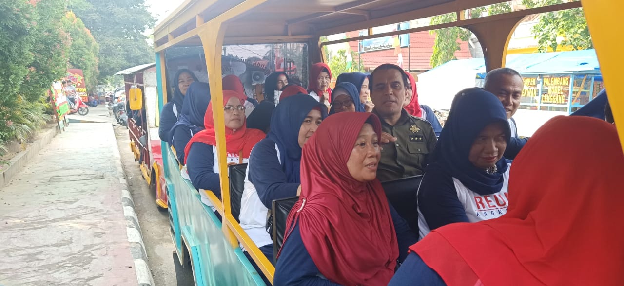 Usai acara reunian di halaman SMP Negeri 1 Muara Bungo, Riduwan Ibrahim bersama sahabatnya alumni SMP Negeri 1 Muara Bungo angkatan 33 tahun 1986 mengelilingi kota Muara Bungo dengan menggunakan odong-odong. (Oni)