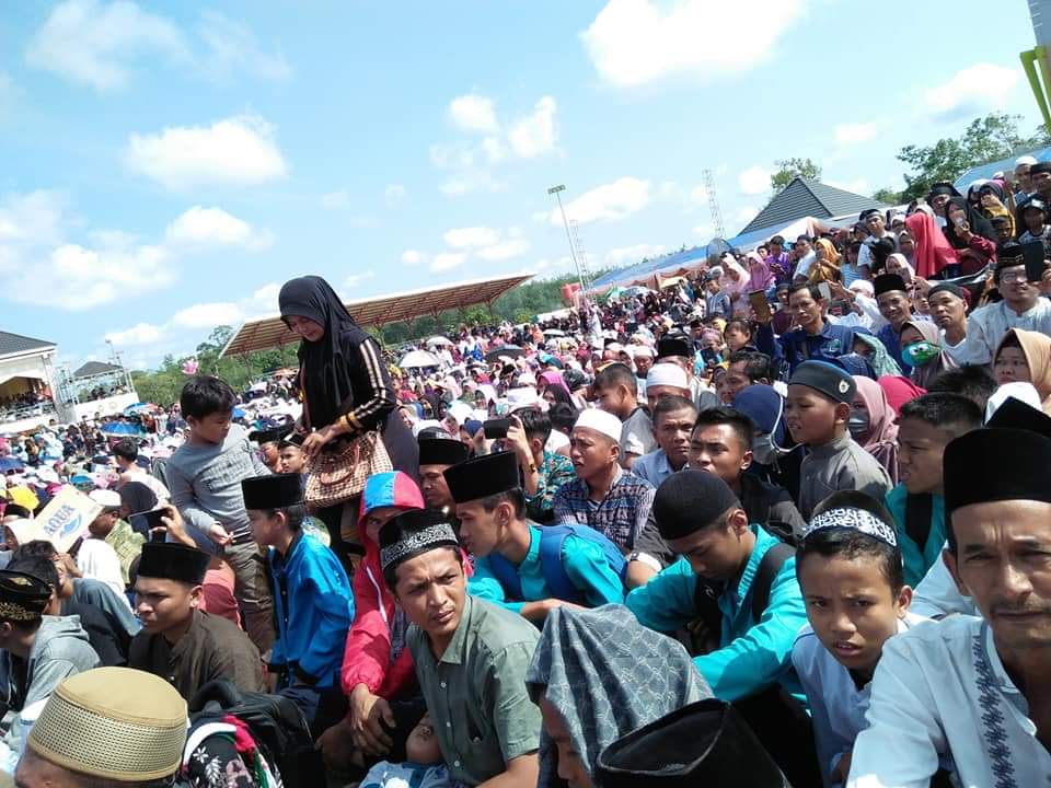 Ribuan jemaah dari berbagai daerah di Kabupaten Bungo ini datang untuk mendengar tausiah dari ustadz Abdul Somad. Ribuan jemaah yang hadir ini tidak mempedulikan walau berada di lapangan terbuka dibawah teriknya panas matahari.