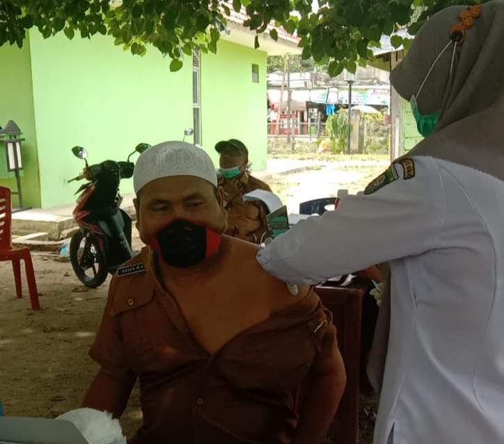 SUARA BUNGO – Untuk yang kedua kalinya, Hasan selaku Rio Dusun Tanjung, Kecamatan Tanah Sepenggal melakukan Vaksinasi Covid-19 di Puskesmas Tanah Sepenggal, Selasa (6/4/2021).