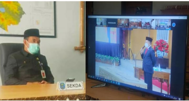 SUARA KERINCI – Mewakili Bupati Kerinci Pj Sekda, Asraf mengikuti prosesi pelantikan penjabat Gubernur Jambi oleh Mendagri RI, Kamis (18/2/2021).