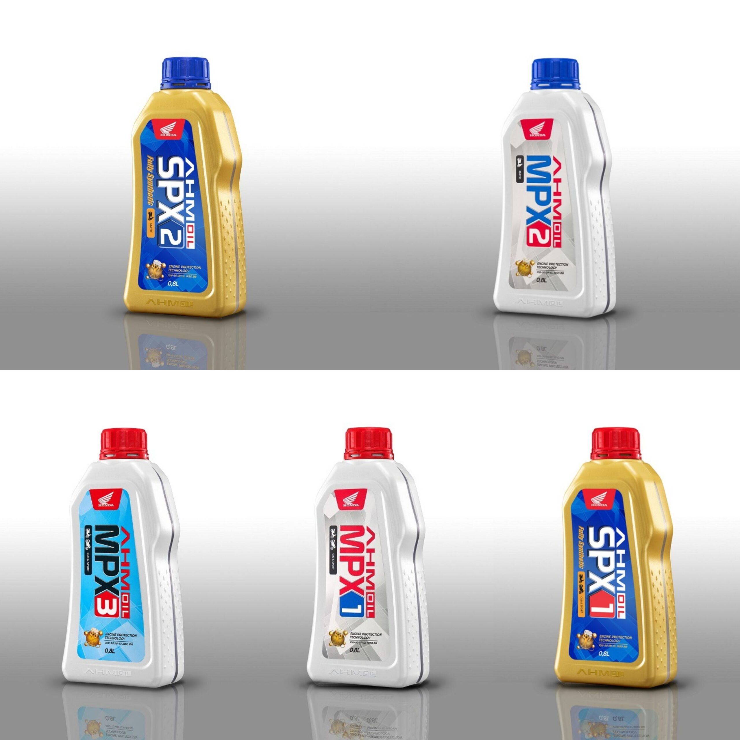 Kemasan baru dari AHM OIL juga mendapatkan ubahan yang membuatnya lebih ergonomis dan mudah untuk digenggam. Posisi tutup botol juga dibuat simetris dengan keseluruhan kemasan. Desain label untuk tipe SPX series dan MPX series kini tampil lebih menarik dengan desain label baru dengan logo Honda terletak pada bagian atas label. Ubahan bentuk kemasan ini juga diikuti dengan warna kemasan baru pada tipe SPX series yang kini berwarna emas.