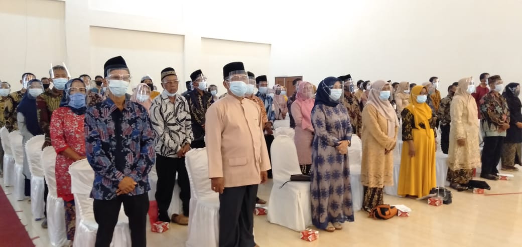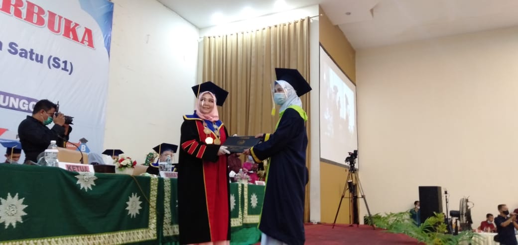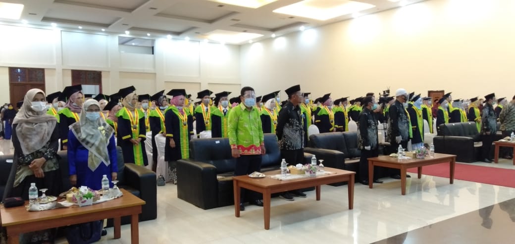 Prosesi wisuda yang digelar di Bal room Semagi Hotel Muara Bungo, Sabtu (07/11/2020) dengan menerapkan protokol kesehatan covid-19 berlangsung sukses.