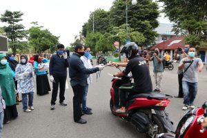 Bupati Mashuri dan Wabup Apri Bagikan Masker Kepada Pengendara