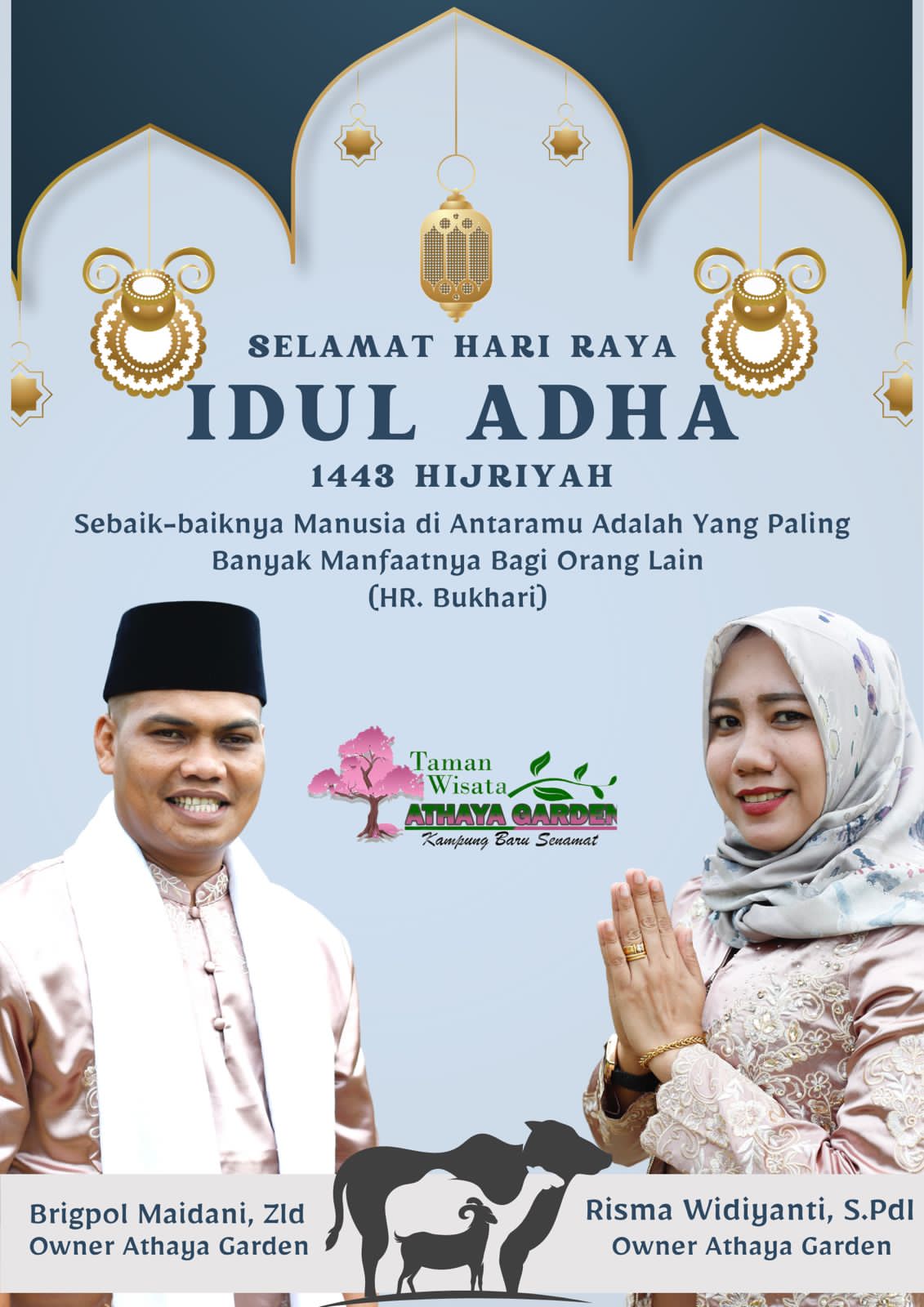 “Kami dari keluarga besar Athaya Garden mengucapkan selamat menunaikan ibadah shalat Idul Adha 1443 Hijriah 2022 Masehi, mohon maaf lahir dan Bathin,” pungkasnya. (Oni)