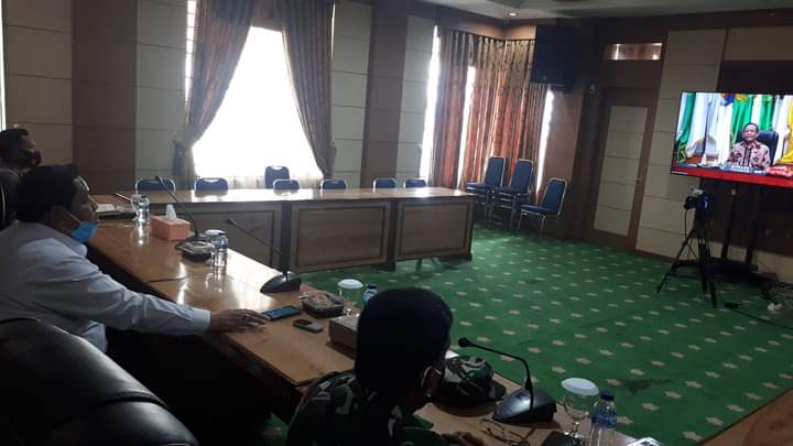 SUARA SUNGAI PENUH – Walikota Sungai Penuh yang diwakili Wakil Walikota, H. Zulhelmi dan Forkopimda Kota Sungai Penuh, mengikuti Rapat koordinasi bersama Menko Bidang Polhukam, Menko Bid Perekonomian, Mendagri, Menkeu, Menker, Panglima TNI, Kapolri dan Jaksa Agung. Digelar secara Virtual, rapat tersebut dibuka langsung Menkopolhukam, Mahfud MD, Rabu (14/10/2020).