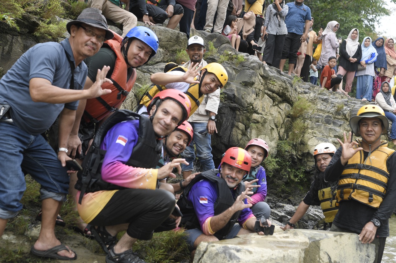 Kedua evaluator Geopark Merangin-Jambi itu saat berada di perahu karet bersama Wabup Merangin Nilwan Yahya, GM Geopark Merangin-Jambi Dr Agus dan Interpreter Malla Indra serta Geologist Magdalena Ritonga MT, terlihat sangat tenang.