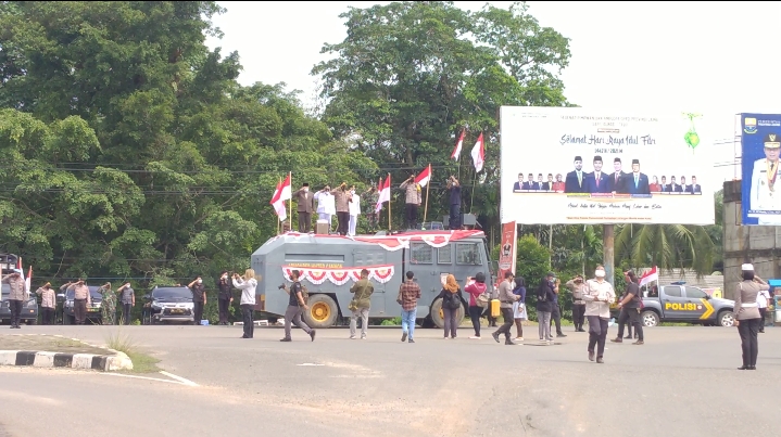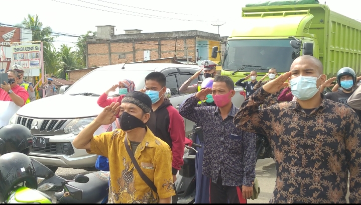 SUARA BUNGO – Dalam memperingati detik-detik Proklamasi Kemerdekaan Republik Indonesia yang ke-76 di Kabupaten Bungo, sangat unik dari tahun sebelumnya. Kali ini dilakukan ditengah Jalan Lintas Sumatra, tepatnya dilampu merah Simpang Jambi, Selasa (17/08/2021).