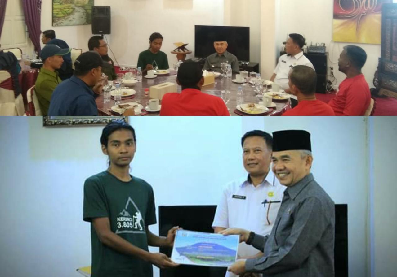 “Kemarin beliau (Abu Syamsudin) sudah mencapai puncak Gunung Kerinci yang didampingi oleh beberapa guide dan hari ini kita silahturami dan sarapan bersama dengan beliau serta beberapa teman lainya,” kata Bupati Adirozal.