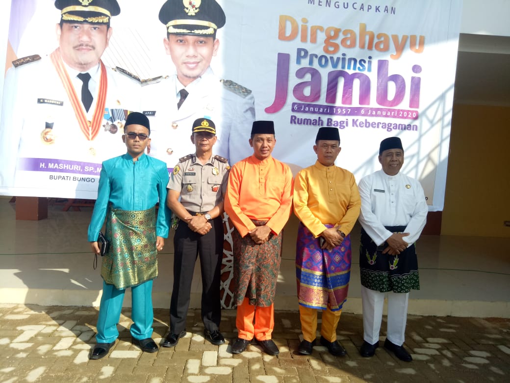 “Alhamdulillah, hari ini kita memperingati Hari Ulang Tahun (HUT) Provinsi Jambi yang ke-63 tahun 2020, saya pribadi dan Pemerintah Kabupaten Bungo mengucapkan selamat ulang tahun Provinsi Jambi yang ke-63 tahun, ini merupakan penghormatan yang mendalam, karena di usia Provinsi Jambi yang ke-63 ini banyak perubahan yang telah di lakukan oleh Pemerintah untuk membangun Bumi Sepucuk Jambi Sembilan Lurah yang kita cintai ini,” ujar Wabup Apri.