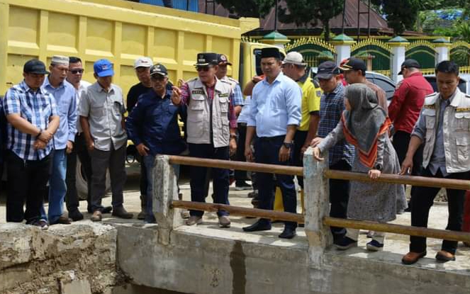 SUARA SUNGAI PENUH – Wakil Ketua DPRD Kota Sungai Penuh, Yoshadi mendampingi Walikota Sungai Penuh meninjau dampak banjir bandang di sepanjang sungai yang melintasi di wilayah Kecamatan Kumun Debai, mulai dari Desa Ulu Air, Kumun hilir, Kumun Mudik dan Muara Jaya yang terjadi pada Rabu 22 Maret mengakibatkan sejumlah rumah warga dan tempat ibadah terendam banjir, Sabtu (25/3/2023).