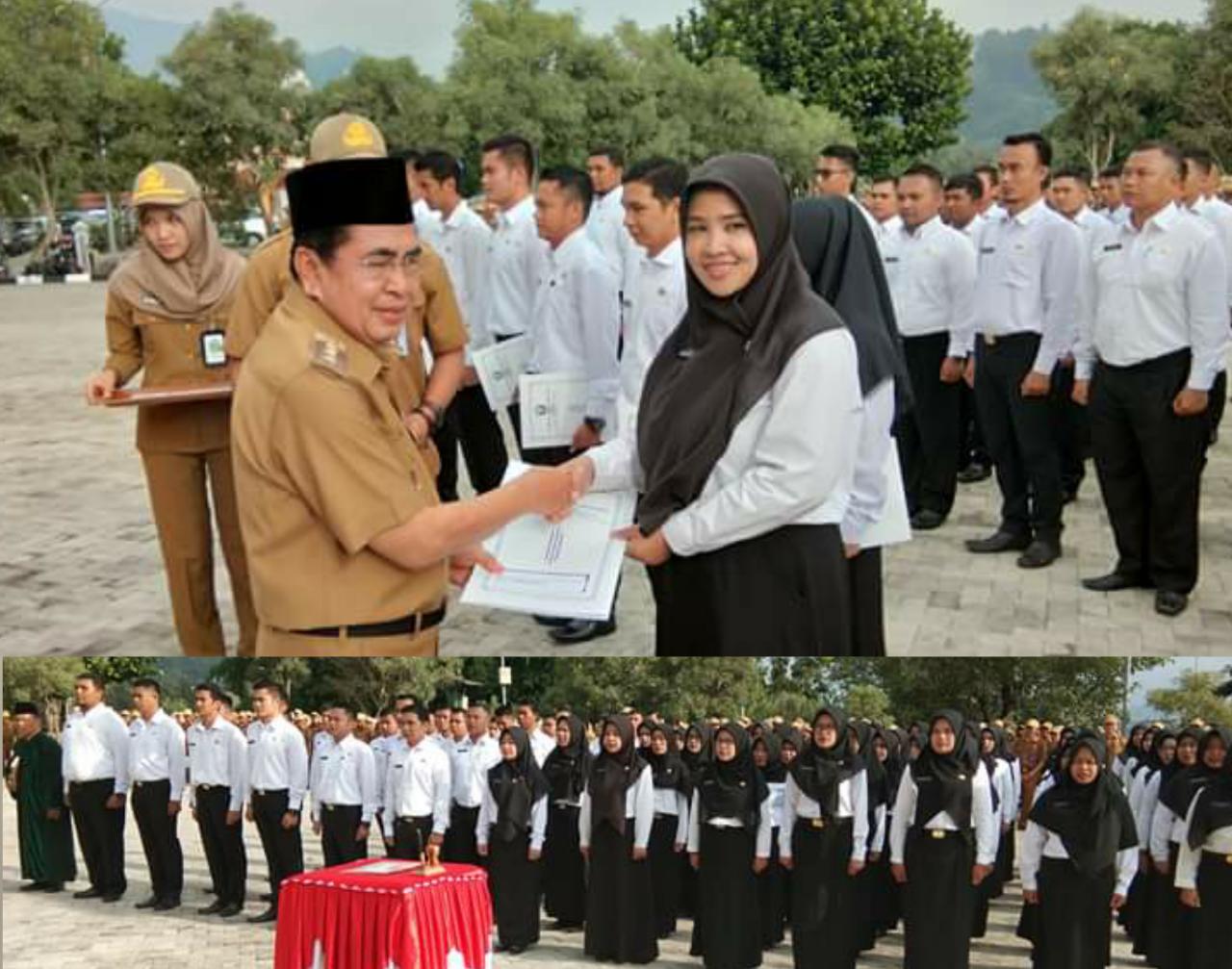 SUARA SUNGAIPENUH – Walikota Sungai Penuh, H. Asafri Jaya Bakri (AJB) mengambil Sumpah PNS sekaligus penyerahan SK PNS kepada 98 CPNS Kota Sungai Penuh, Senin (02/03/2020).