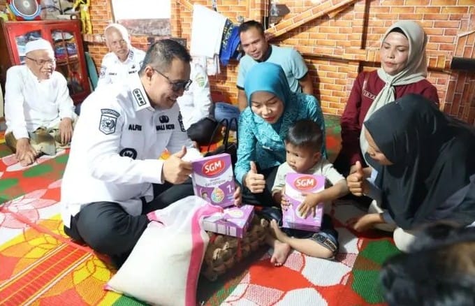 Tak hanya infrastruktur, sektor sosial juga jadi perhatian. Wako Alfin menyerahkan langsung bantuan kepada warga Sungai Ning, memastikan distribusi pangan lancar, dan mempercepat pelaksanaan program unggulan Makan Bergizi Gratis (MBG).