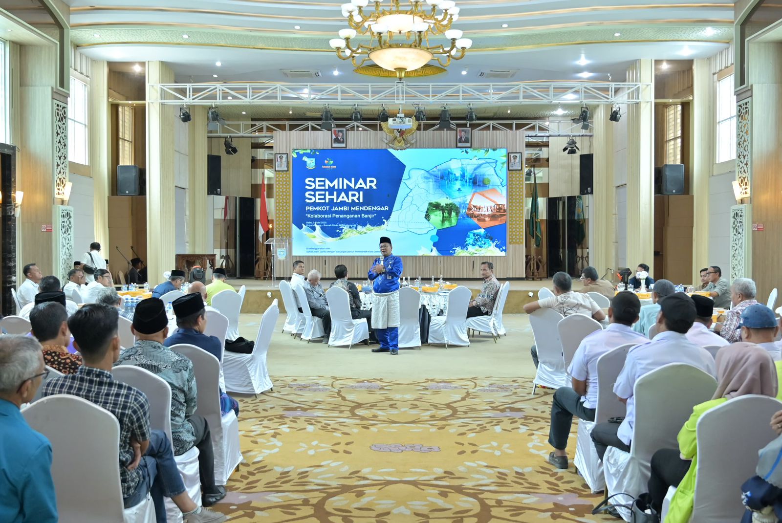 SUARA KOTA JAMBI – Komunitas lingkungan Sahabat Alam Jambi menggelar Seminar Sehari bertema “Pemkot Jambi Mendengar”, yang digelar pada Rabu, 14 Mei 2025 di Aula Griya Mayang, Rumah Dinas Wali Kota Jambi. Mengangkat topik “Model Kolaborasi Penanganan Banjir,” seminar ini menghadirkan langsung Wali Kota Jambi, Dr. dr. H. Maulana, M.K.M, yang memaparkan langkah-langkah nyata dan strategi besar penanganan banjir di Kota Jambi.